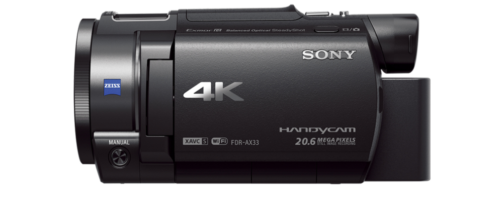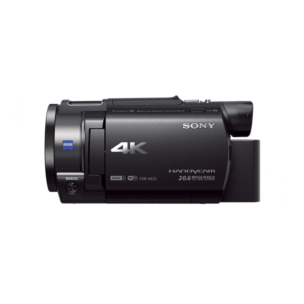Sony FDR-AX33 Videocamera 4K Ultra HD con Sensore CMOS Exmor R, Ottica Grandangolare Zeiss da 29.8 mm, Zoom Ottico 10x, Stabilizzazione Integrata (BOSS), Nero