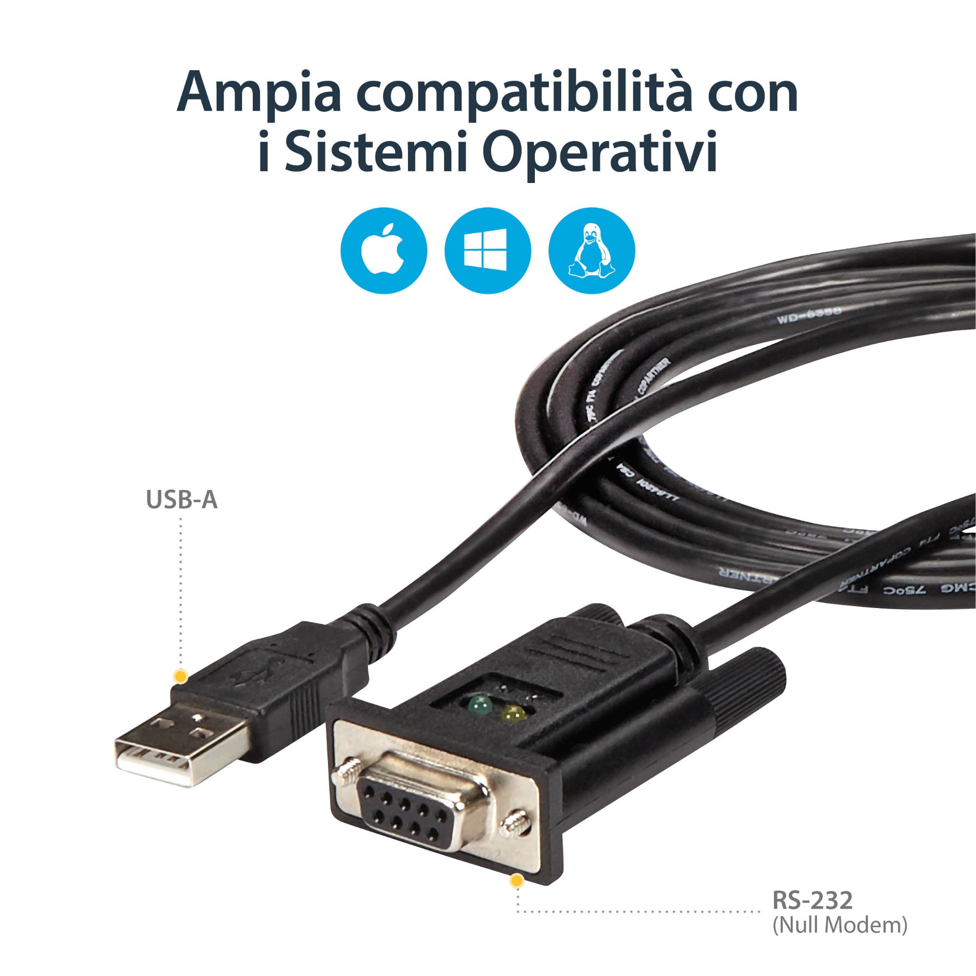 Questo adattatore USB a null modem è compatibile con un'ampia gamma di sistemi operativi, compresi Windows®, Windows CE, Mac OS e Linux, rendendolo una soluzione ideale per una semplice integrazione in ambienti misti.