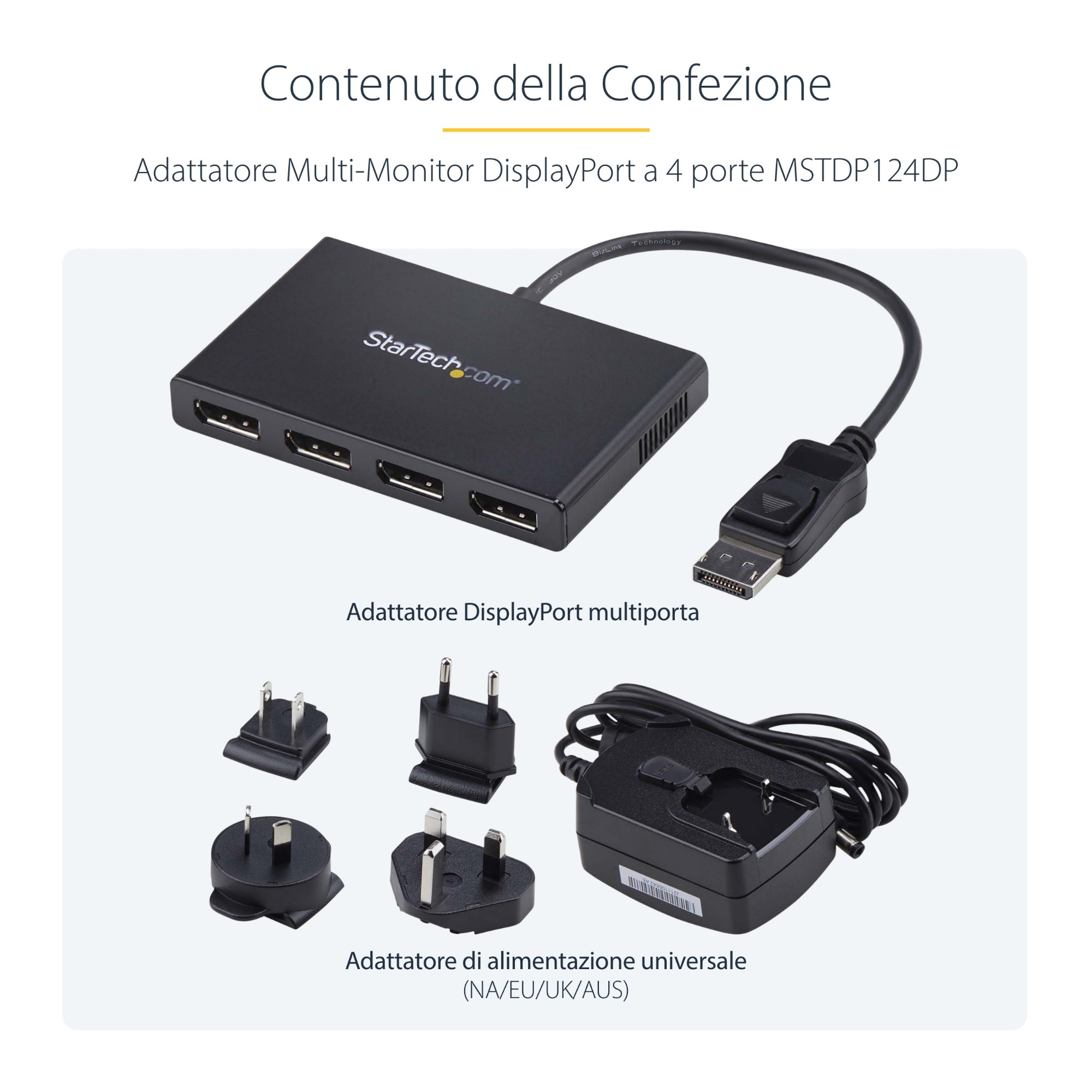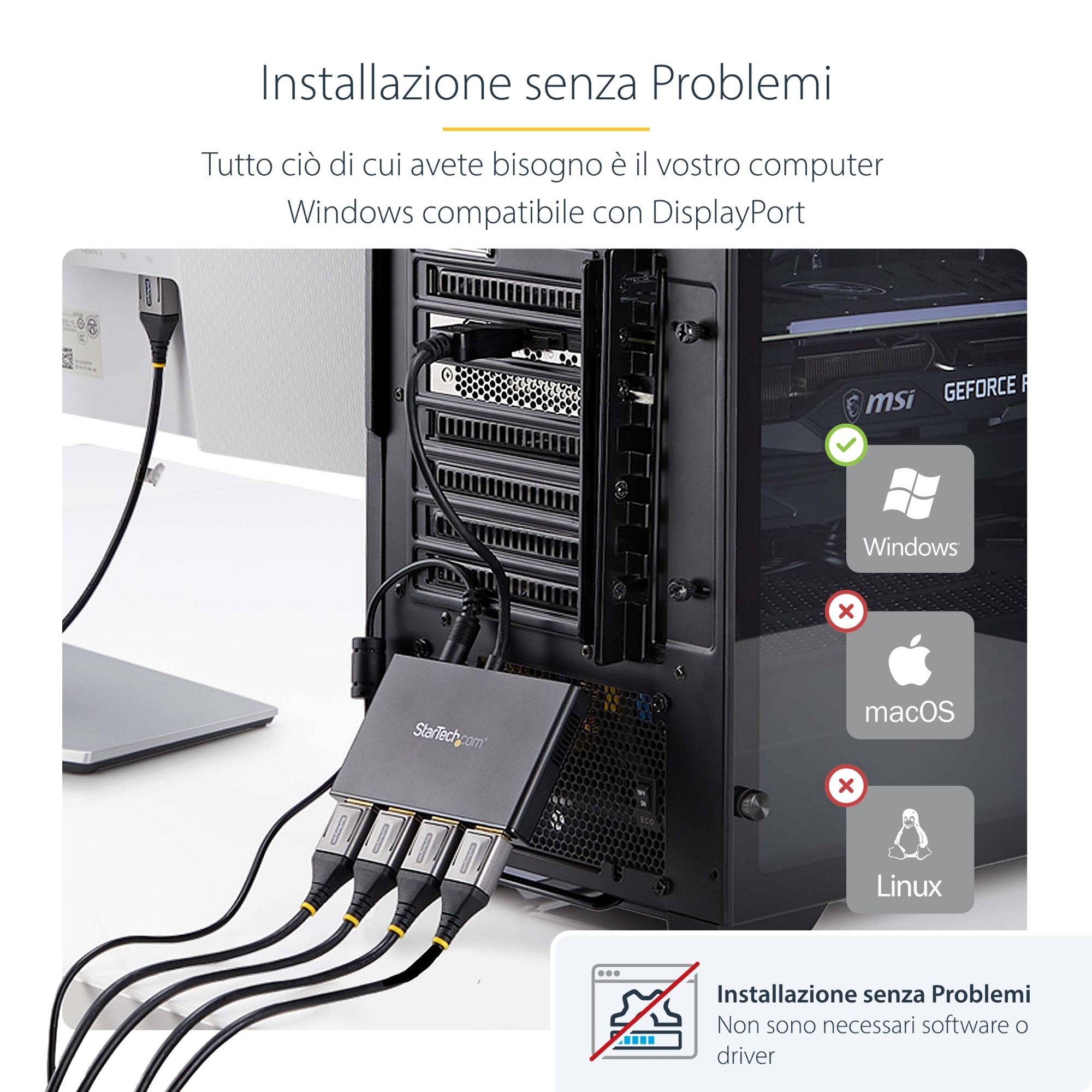 StarTech.com Hub MST DisplayPort a 4 Porte - Adattatore Multi-Monitor DP 1.2 - Sdoppiatore\Splitter Video DisplayPort 1080p per quattro Monitor - DP a 4x DP - Solo Windows (MSTDP124DP)