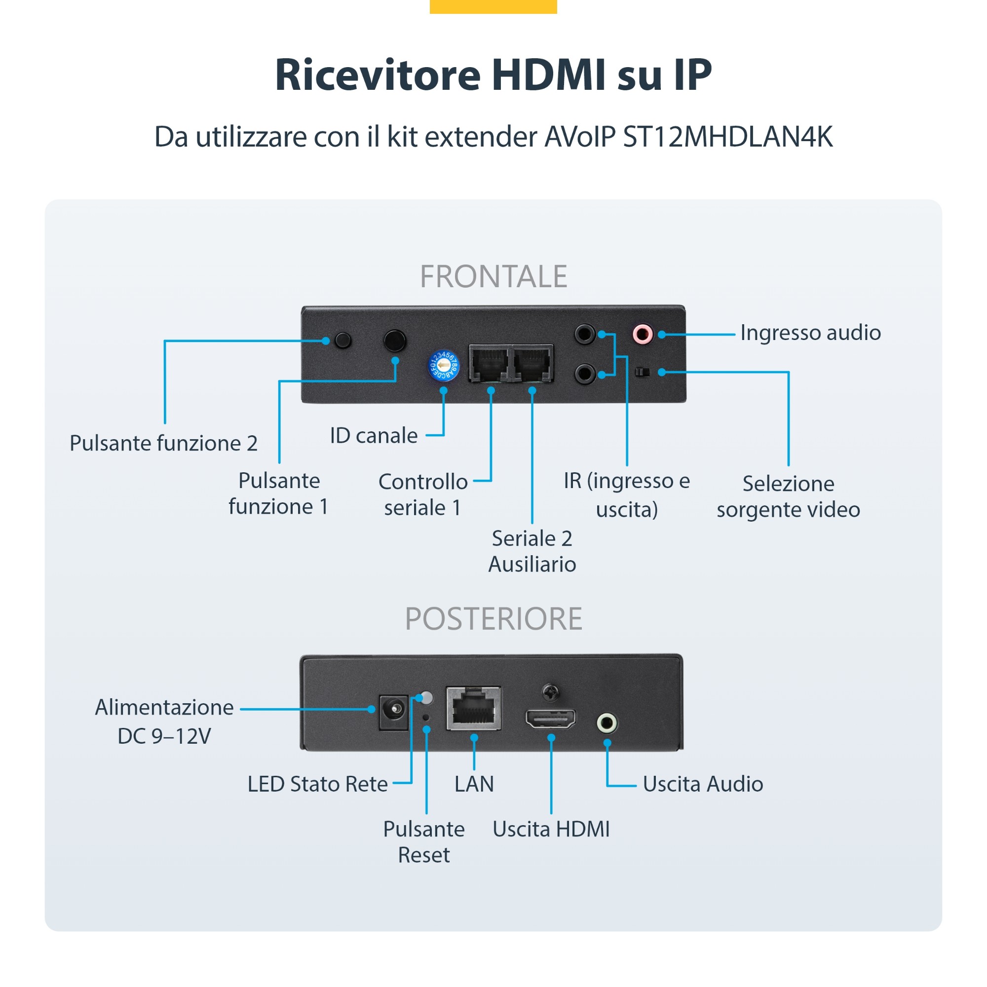 Ricevitore 4K per il kit extender HDMI via IP (ST12MHDLAN4K) che consente di espandere l'extender ad altri display per realizzare un video wall o altri sistemi di segnaletica digitale
