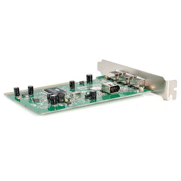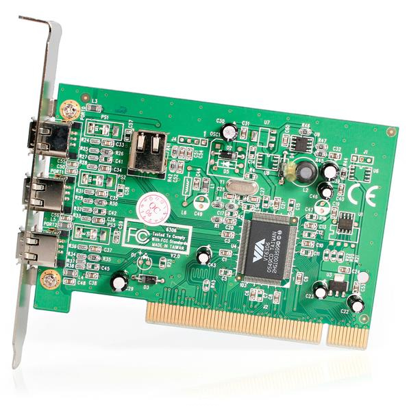 Questa scheda adattatore FireWire 400 PCI IEEE 1394 a 4 porte trasforma uno slot PCI per scheda madre in quattro porte a connettori femmina FireWire IEEE 1394a (1 interna, 3 esterne): una soluzione conveniente che permette di collegare al computer desktop qualsiasi dispositivo FireWire 400 dotato di connettore a 6 pin.