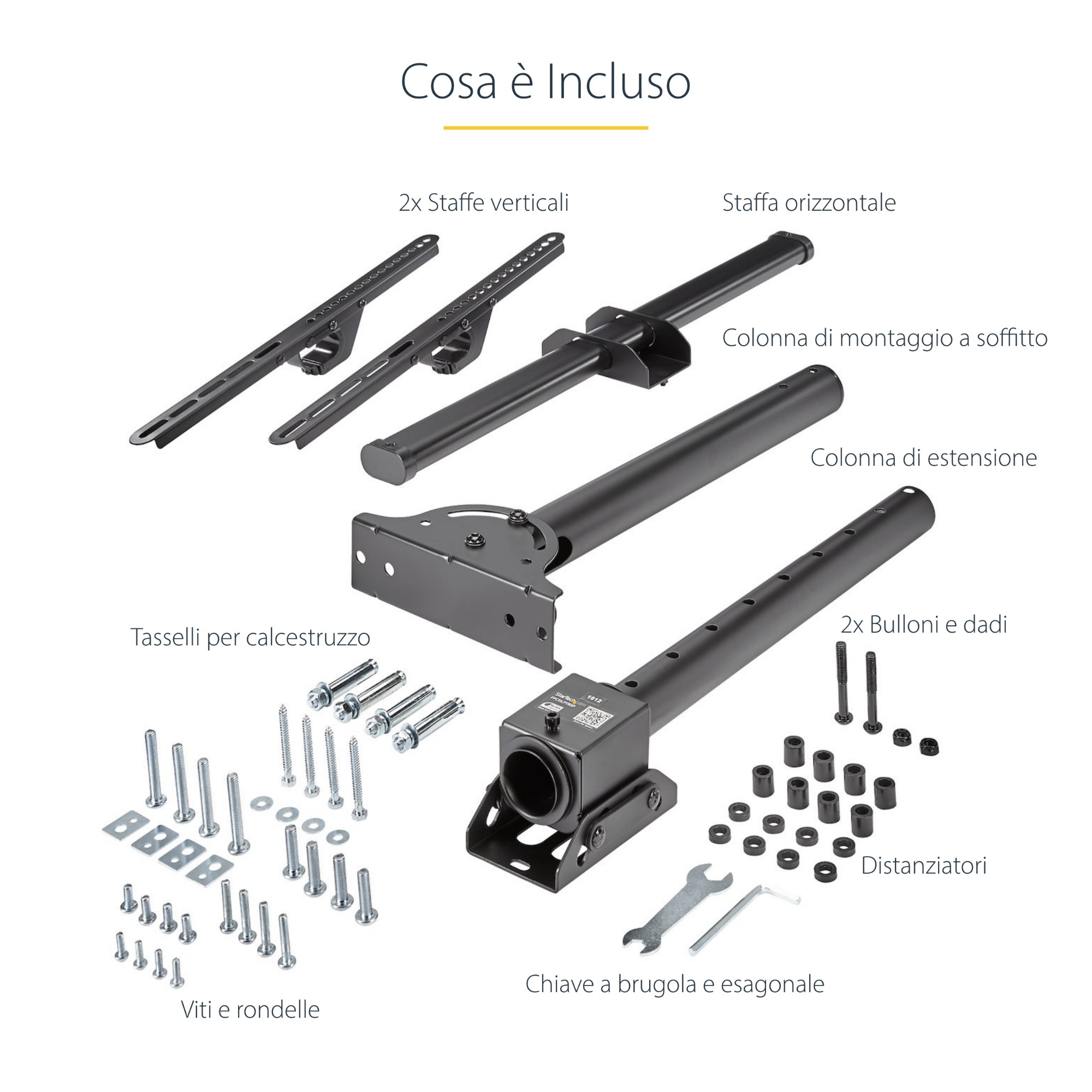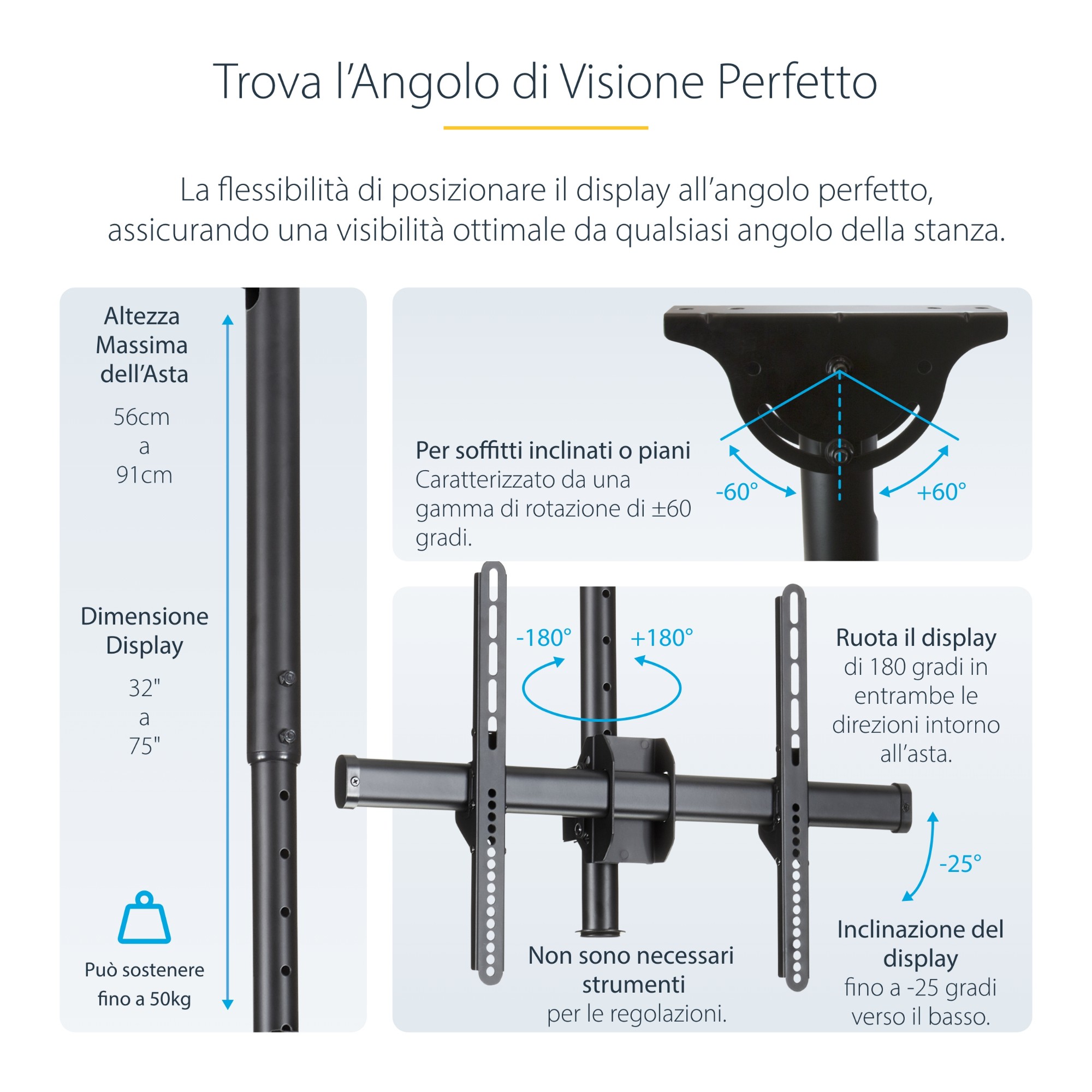 StarTech.com Supporto a soffitto per TV da 32" a 75" - Staffa per TV con asta telescopica regolabile - Inclinabile / girevole