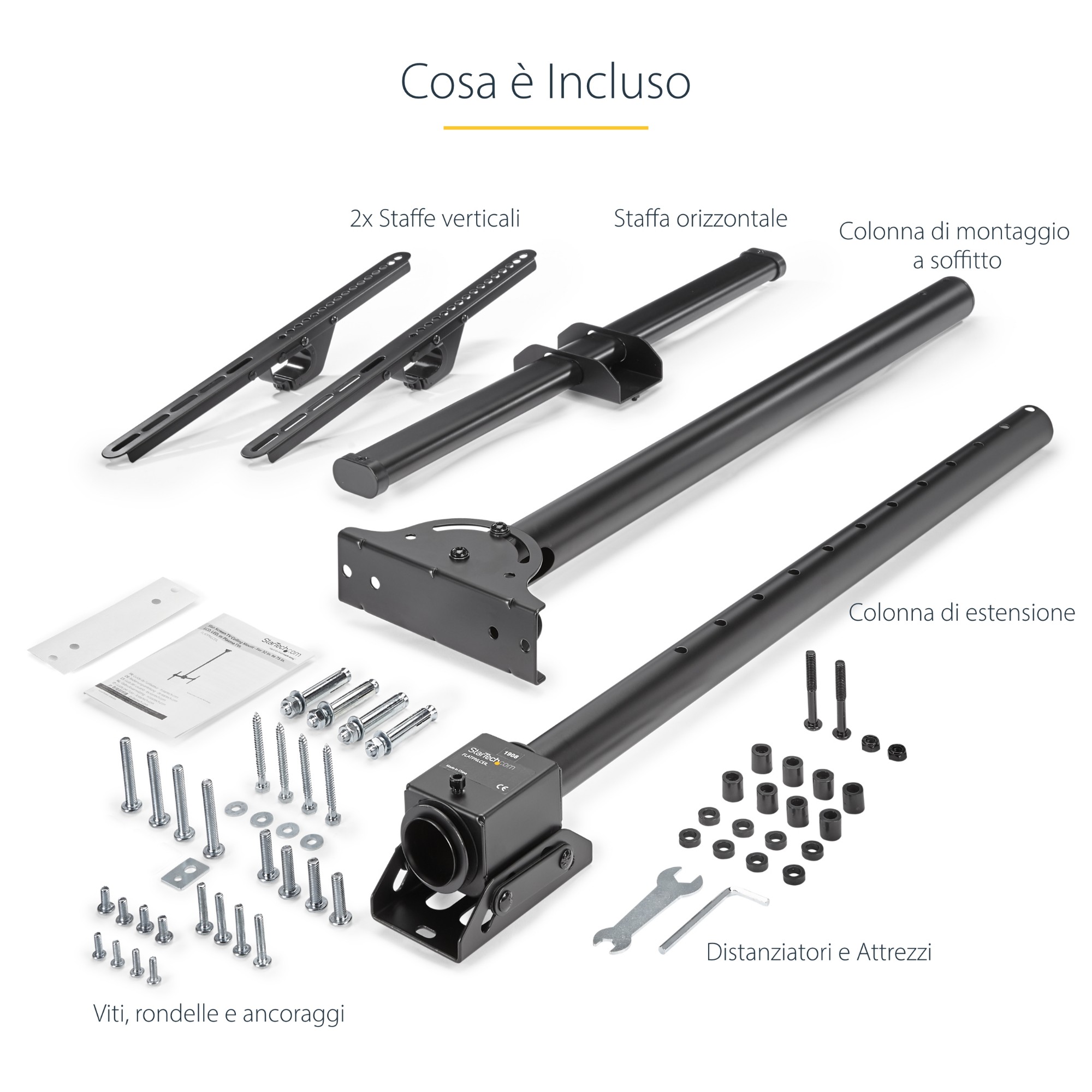 StarTech.com Supporto a soffitto per TV - Staffa per TV con asta telescopica regolabile - Inclinabile / girevole - Staffa VESA universale per schermo singolo da 32" a 75"