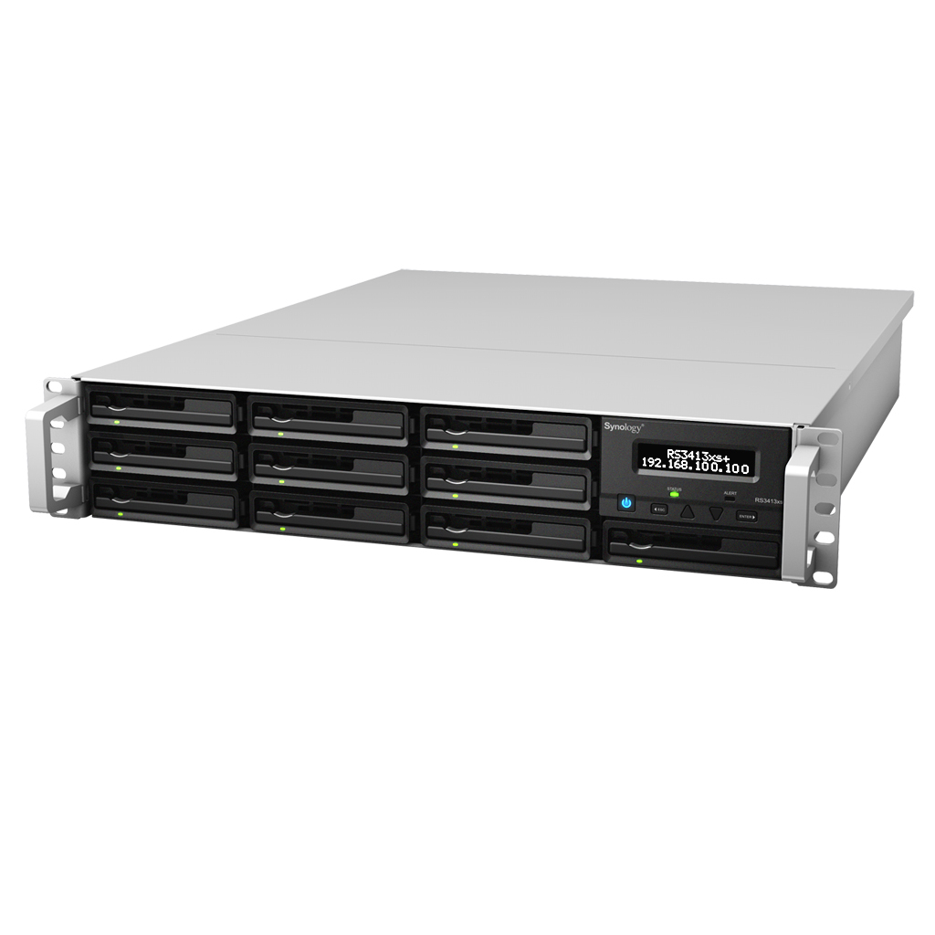 Synology RackStation RS3413xs+. Tipo di case: Armadio (3U). Frequenza del processore: 3,5 GHz. RAM installata: 8 GB. Capacità di archiviazione totale installata: 0 TB